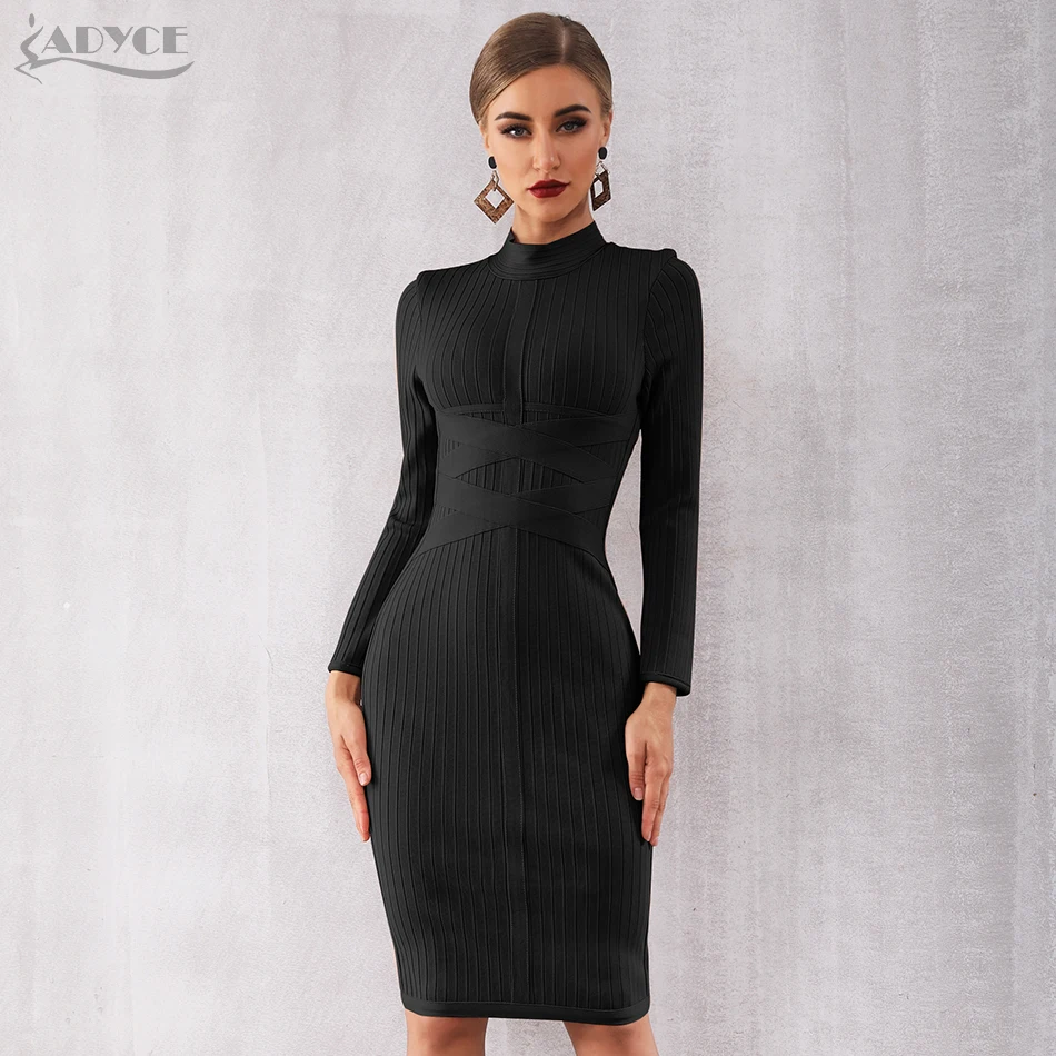 Good Product Adyce 2019 New Winter Bodycon Bandage Dress Women Sexy Long Sleeve Midi Club Dress Vestidos Black C